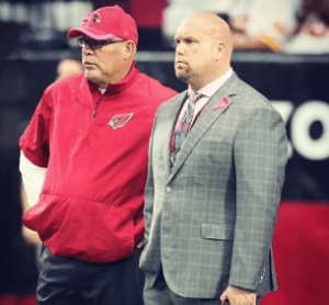 Steve Keim is the former General Manager of the Arizona Cardinals. He has had a long tenure in the Cardinals organization, working for 14 years in the team’s personnel department before being promoted to general manager in 2013. During the first four years Keim was on the job, Arizona set a franchise record with 41 wins. Sporting News named him Executive of the year in 2014. He was Pro Football Talk’s Executive of the Year in 2013 and 2014. He originally joined the Cardinals as a college scout in 1999. He became director of college scouting in 2006, director of player personnel in 2008 and vice president of player personnel in 2012. As a player NC State, Keim was a two-time All-Atlantic Coast Conference pick and 3rd team ALL American his senior year. He had a brief professional playing career with the Miami Dolphins before returning to coach at NC State.